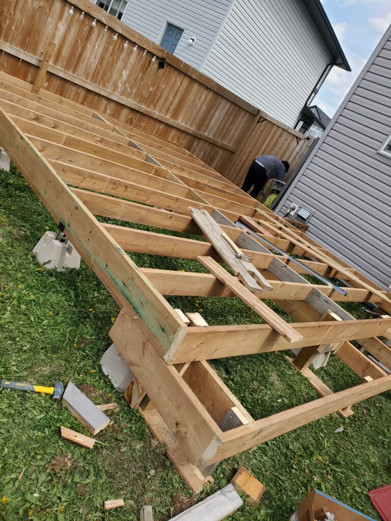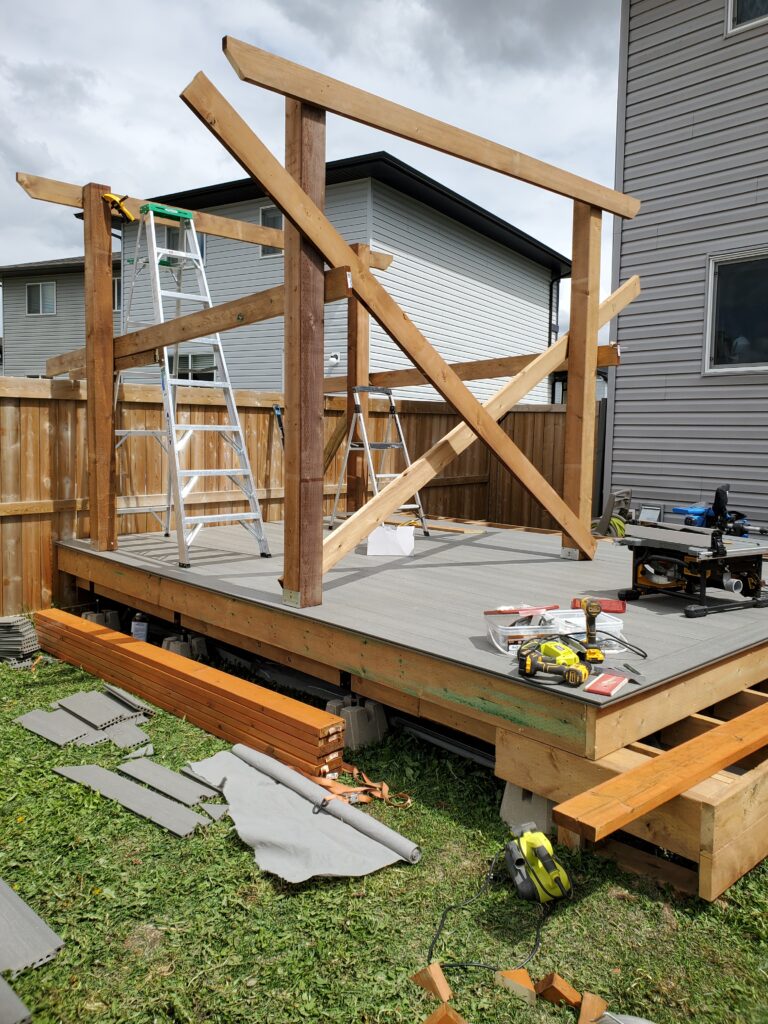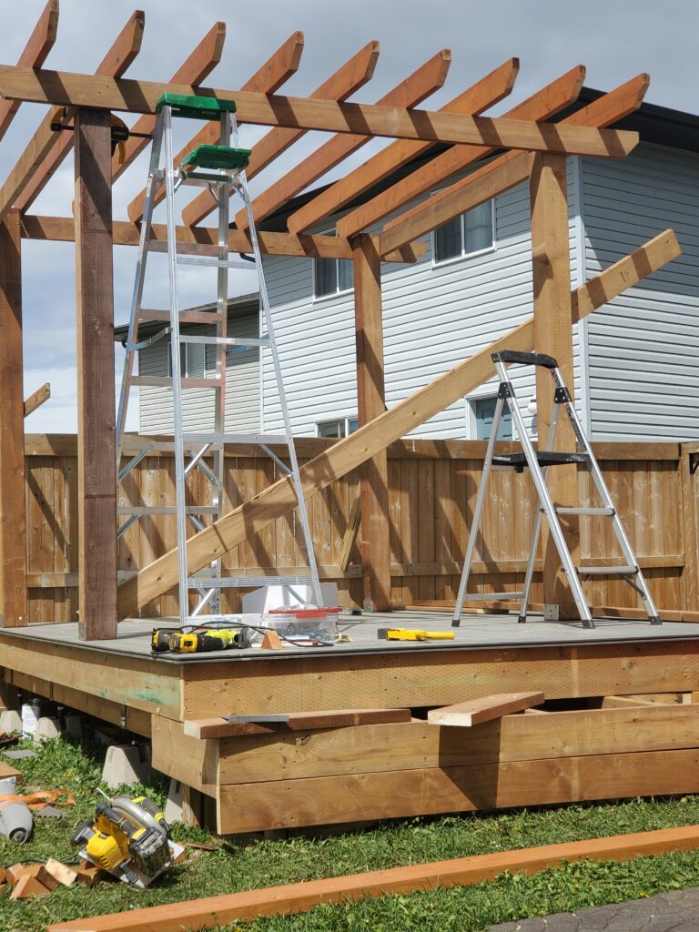 TAGS: Aluminum Railings, Backyard, Carpentry, Composite Deck, Deck, Pergola, Railings, Residential, Siding, Stained, Wood, Wood Framing