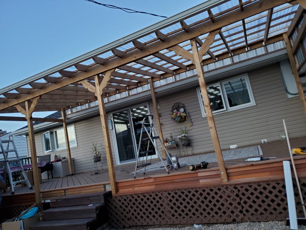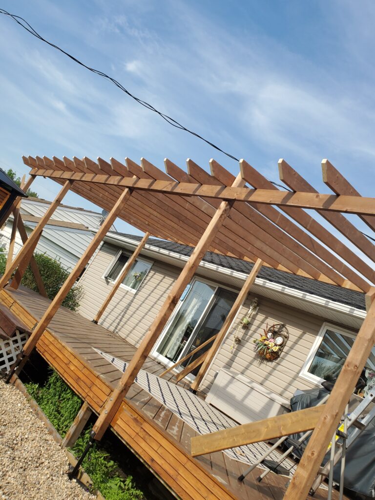 Tags: Backyard, Carpentry, Framing, Pergola, Roofing, Siding, Stained, Stair, Wood, Wood Framing
